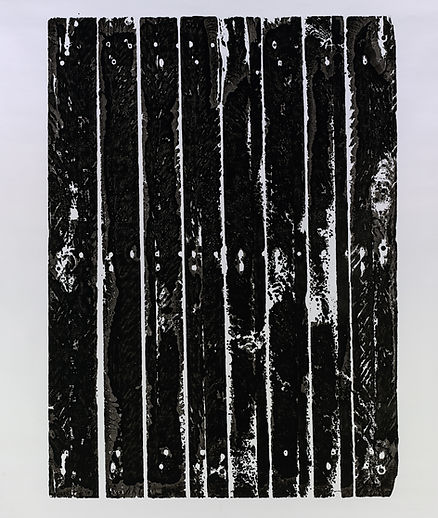 Damien les imprime sur papier en noir Glycéro afin d'en révéler les textures ,matières de ceux-ci.